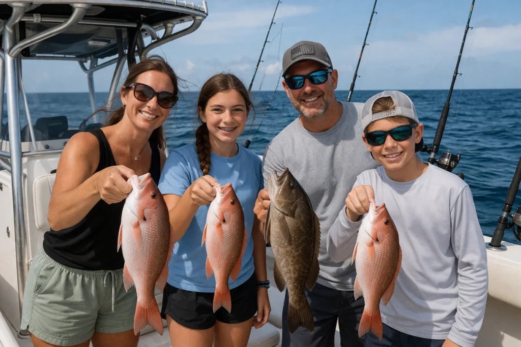 Fall fishing in Orange Beach is relaxed and rewarding. As water temps cool, redfish, speckled trout, and king mackerel remain active. It’s the perfect time for families looking to avoid crowds while still catching quality fish. Our captains often recommend a mix of trolling and bottom fishing this time of year.